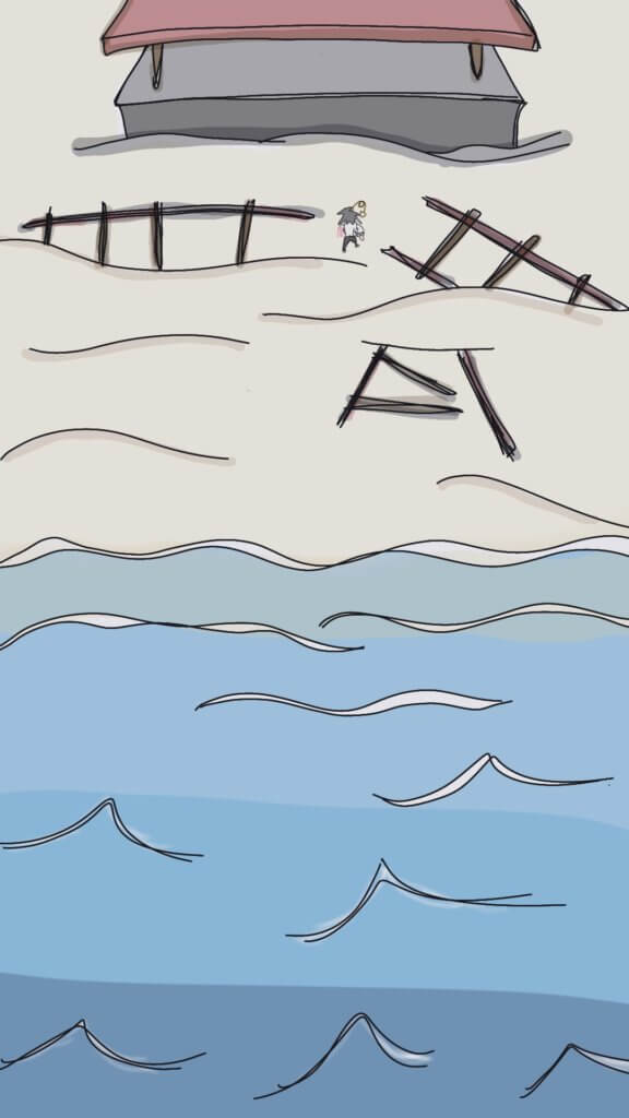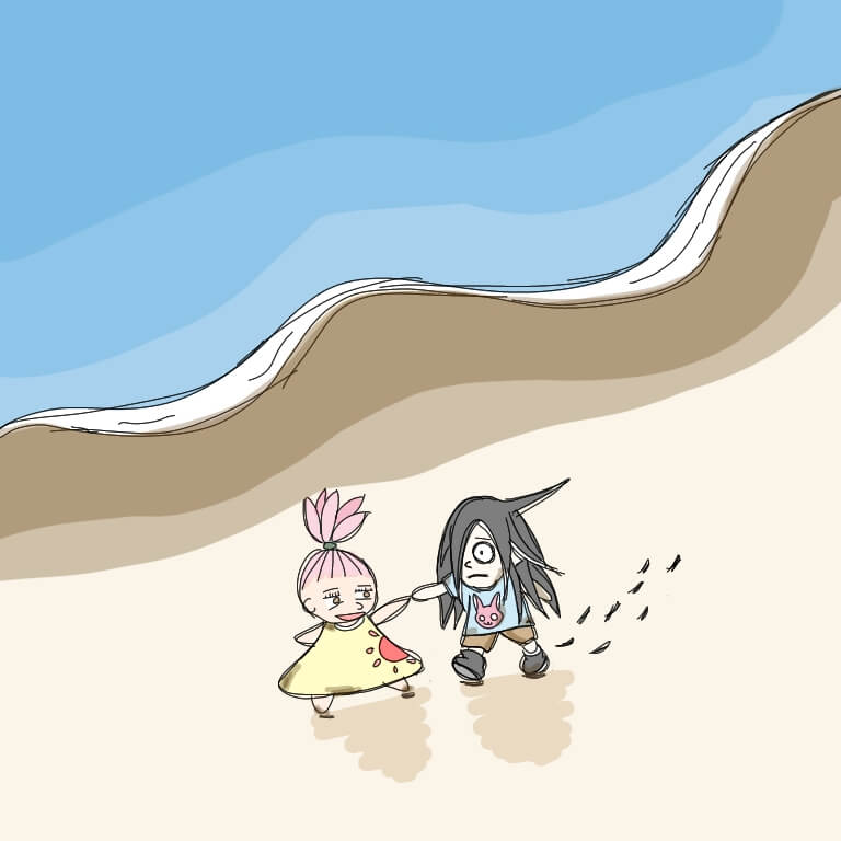 大きな水たまり。キラキラ光って、見渡す限り青色で。イヤな匂いはしたけど、追っ手を振り切った兄貴は笑ってた。